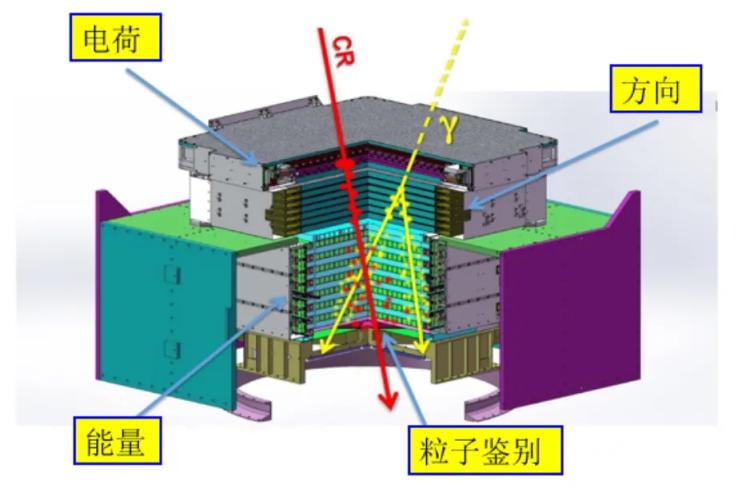 在宇宙空间中开展宇宙线直接探测,是间接寻找暗物质粒子的重要手段。其原理是空间中暗物质粒子有可能会通过湮灭或衰变产生标准模型下的末态粒子(比如正、负电子( 、 )、正反质子和伽马射线等),通过在太空中测量这些高能宇宙线能谱,可以间接寻找暗物质存在的证据。其中宇宙线中正电子被认为是研究暗物质的灵敏探针之一,通过对正电子能谱和正负电子比例的测量来寻找暗物质粒子,是当今物理学、天文学的前沿、热点课题。